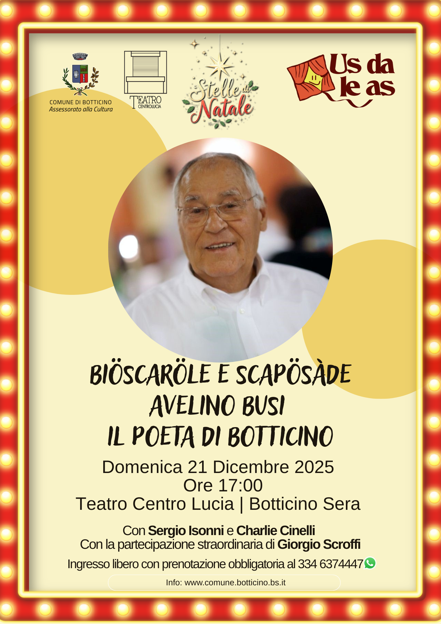 Ingresso libero con prenotazione obbligatoria al 334 637 4447 (preferibilmente Whatsapp)