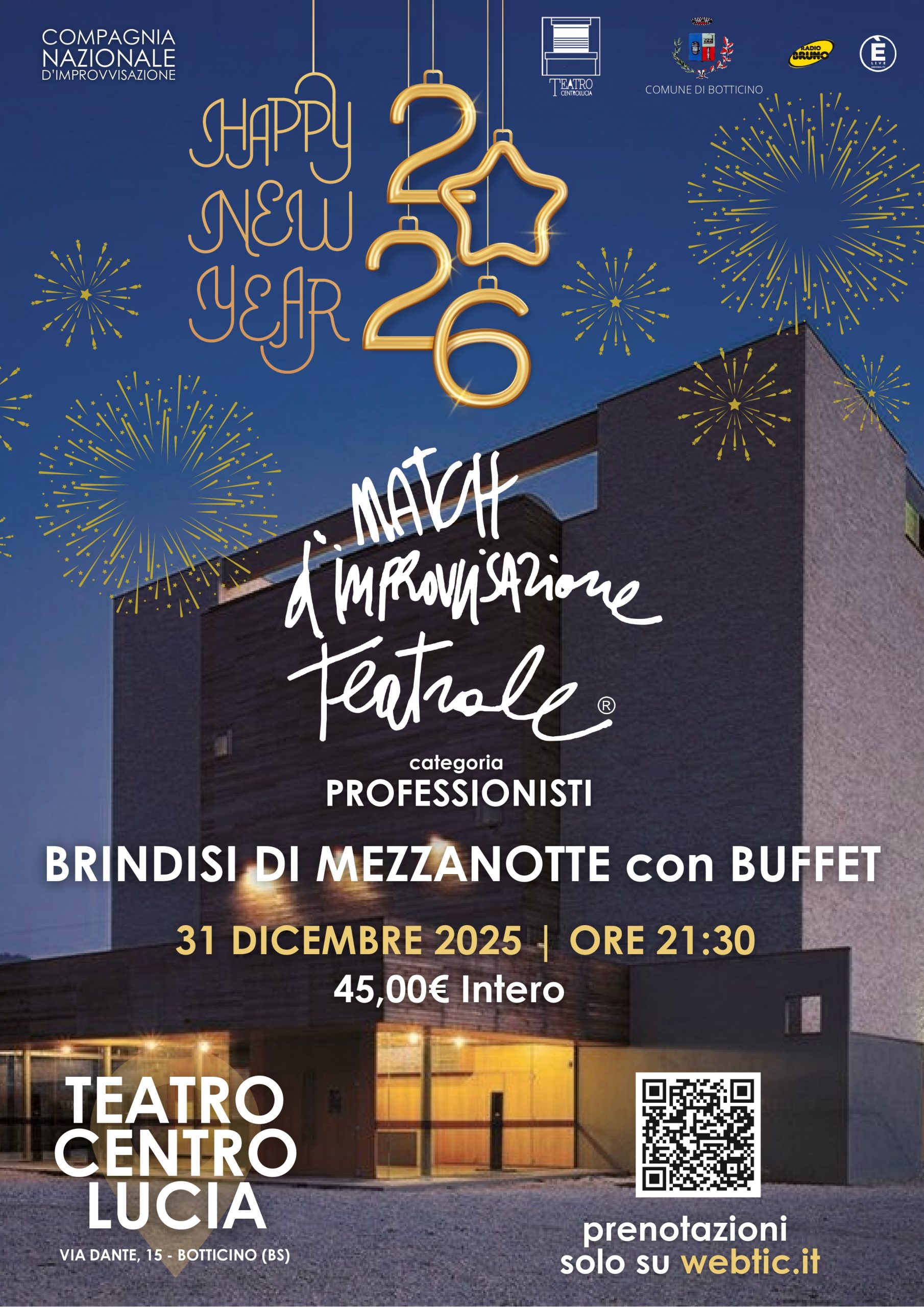 Match di Improvvisazione Teatrale Professionisti con brindisi di mezzanotte e buffet a seguire