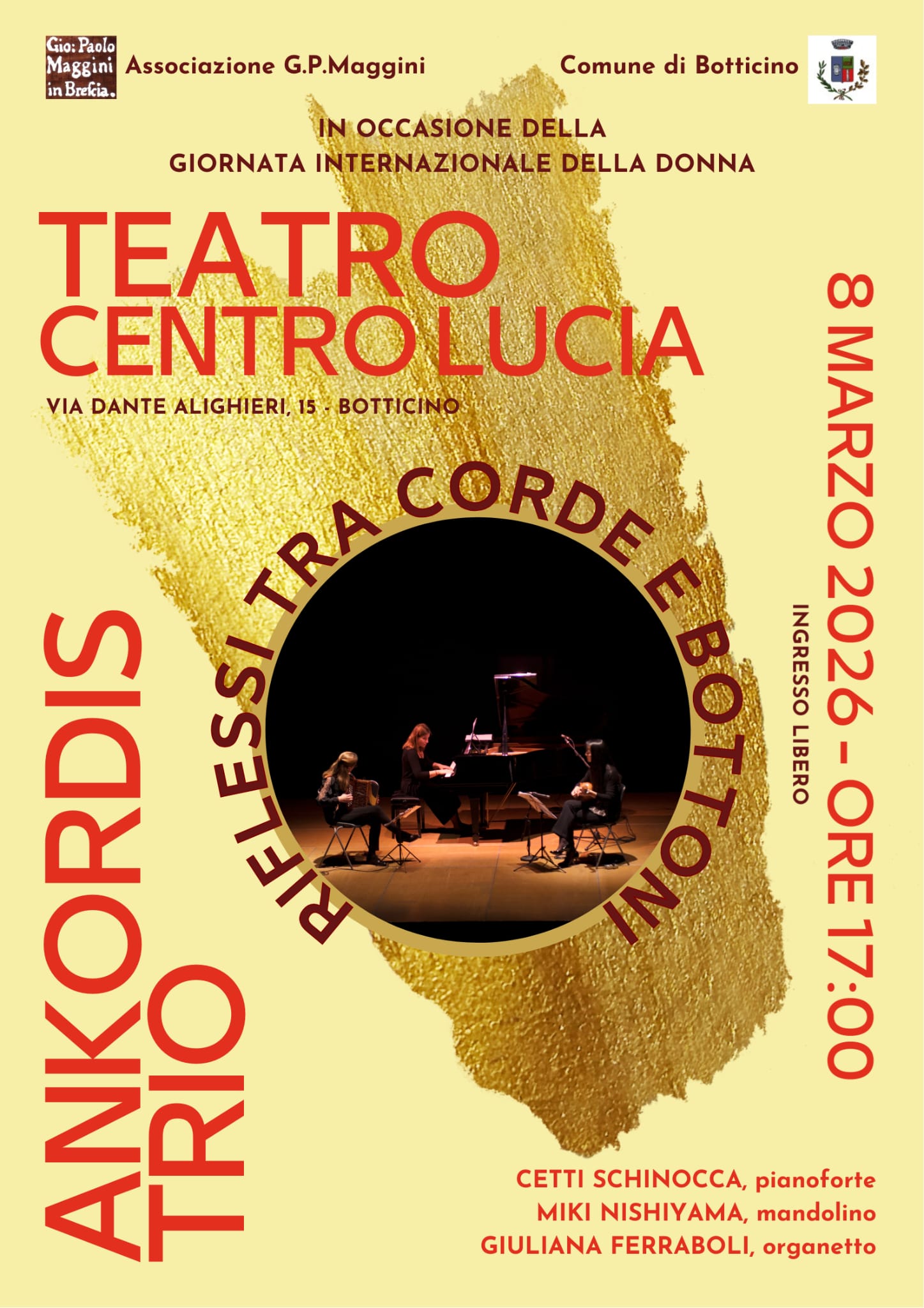 Ankordis Trio: Cetti Schinocca al pianoforte, Miki Nishiyama al mandolino e Giuliana Ferraboli all’organetto.